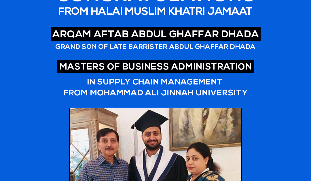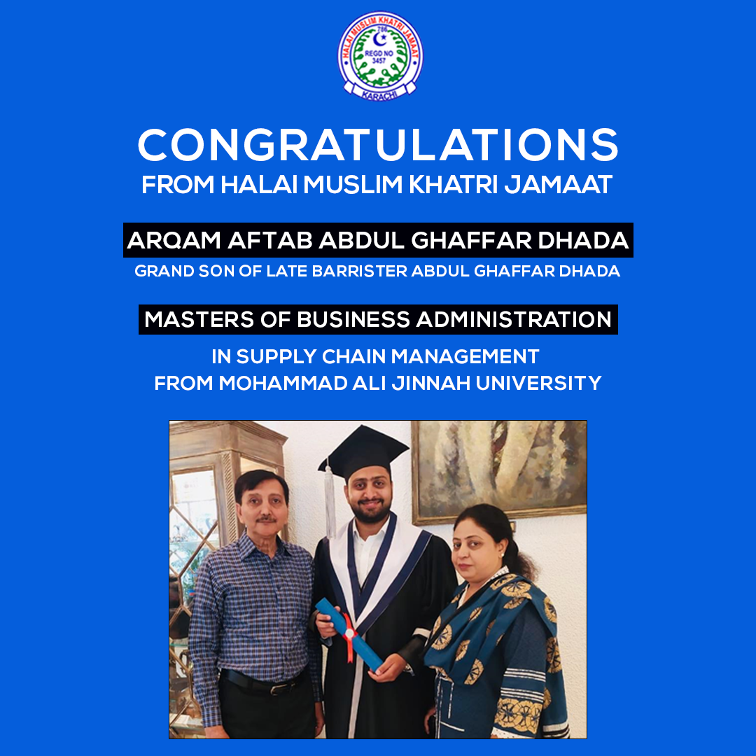 Halai Muslim Khatri Jamaat Karachi > Appreciations > Congratulations to Arqam Aftab Abdul Ghaffar Dhada