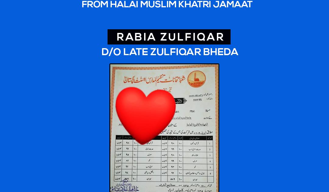 Congratulations to Rabia Zulfiqar Bheda