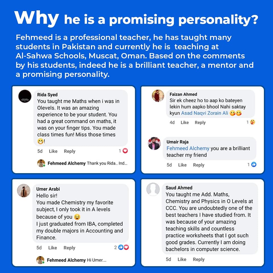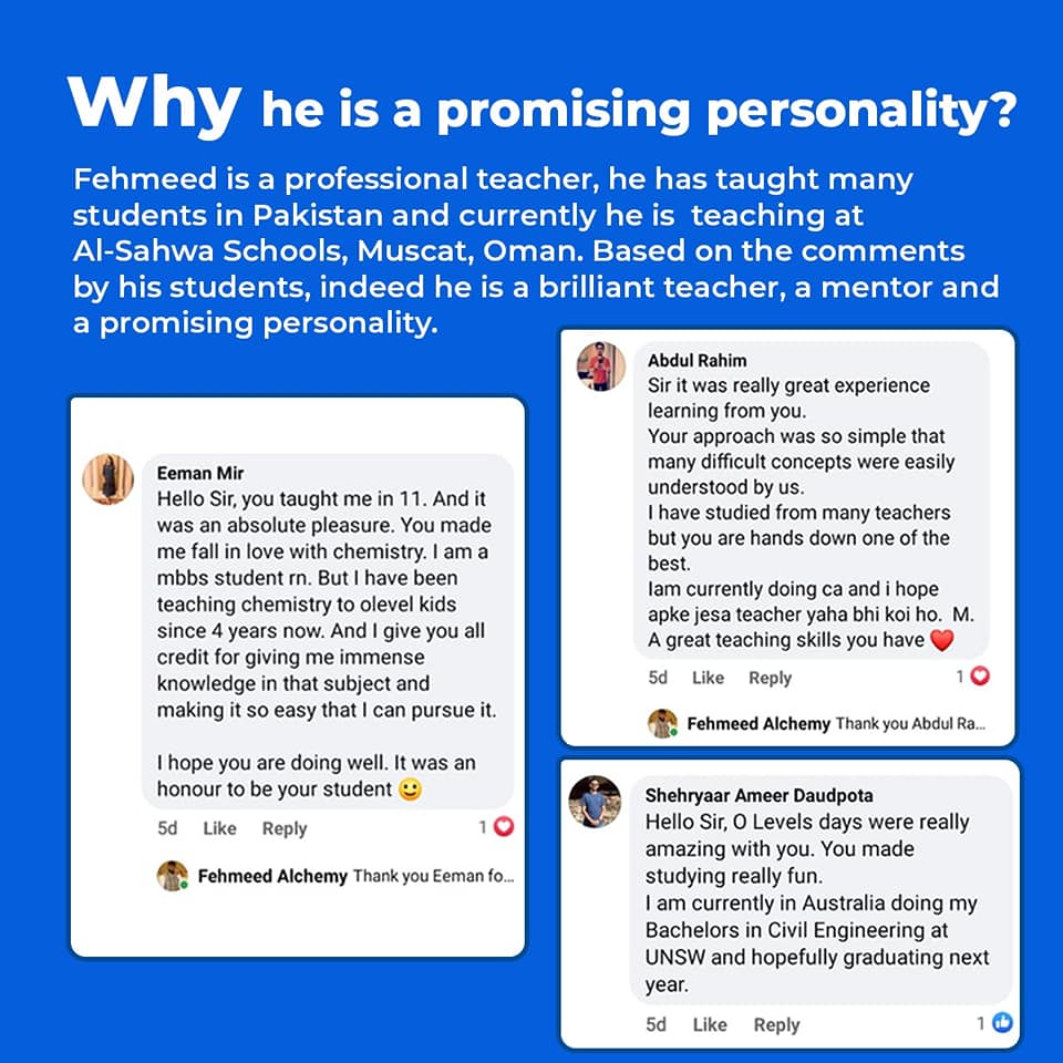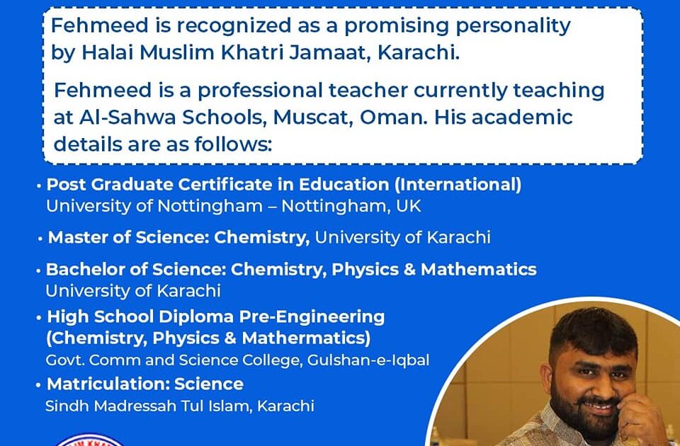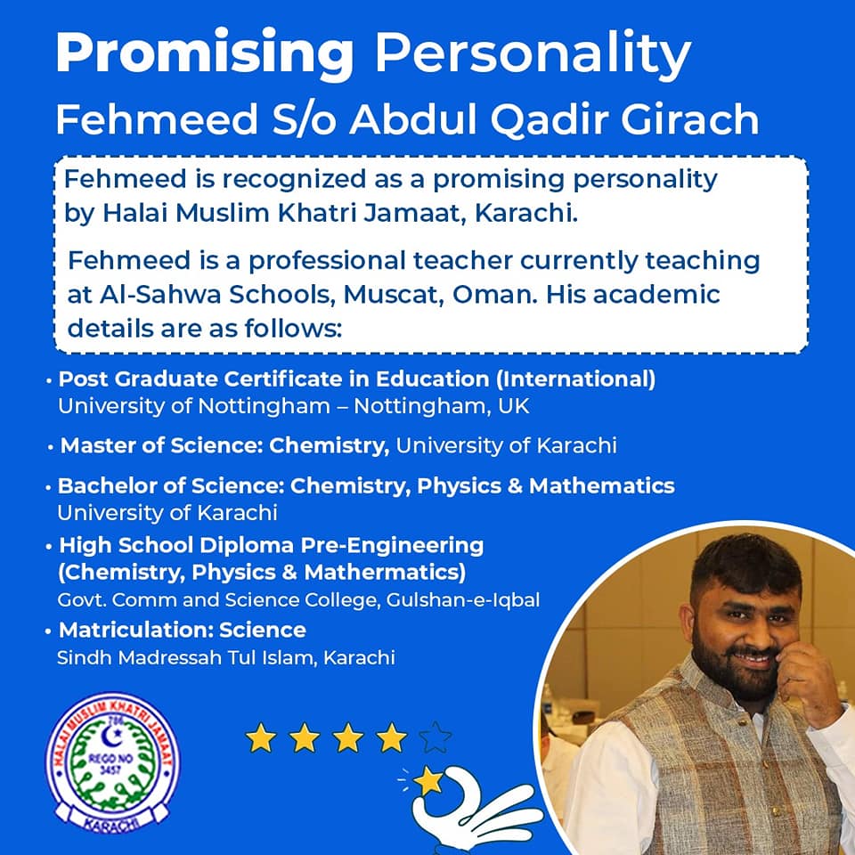 Promising Personality Post 1 - Mr. Fehmeed s/o Abdul Qadir Girach