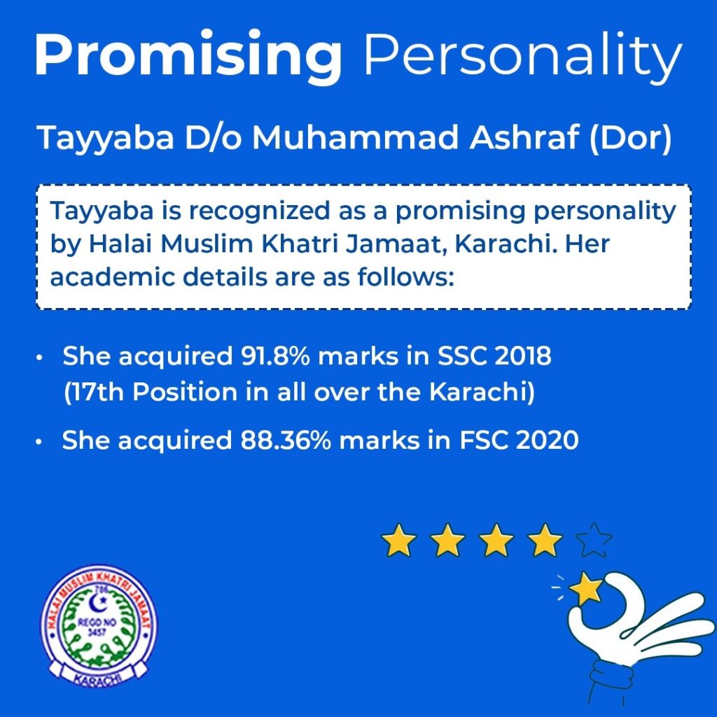 Promising Personality Post 2 – Ms. Tayyaba D/o Muhammad Ashraf Dor