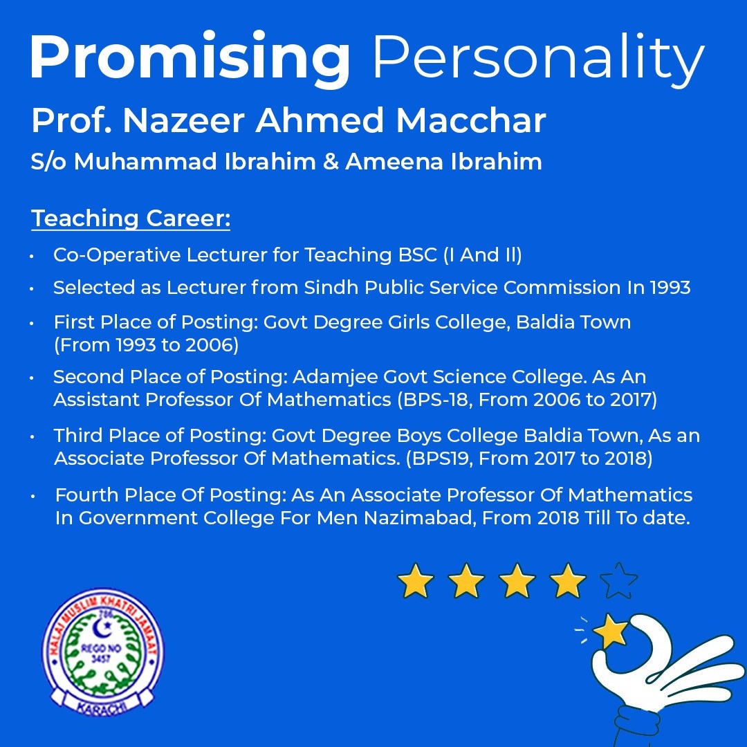 Promising Personality Post 4 - Dr. Umer Shibli Rawasia
